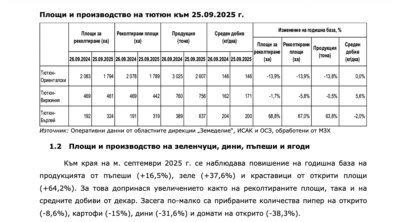 на произведения тютюн тип „Бърлей“ спрямо миналата година. В същото време при