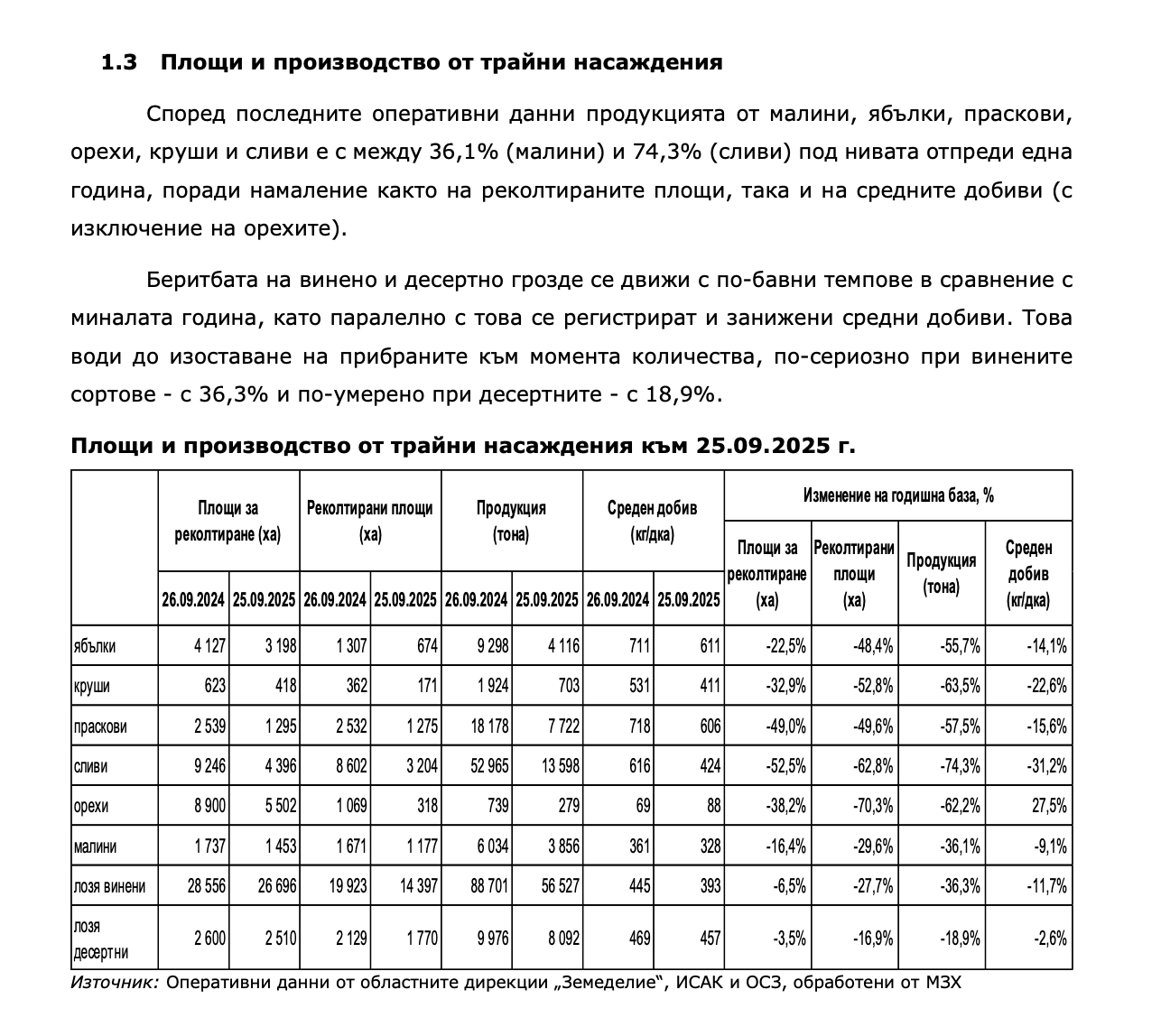1. Проведени основни мероприятия в растениевъдството към 25.09.2025 г.