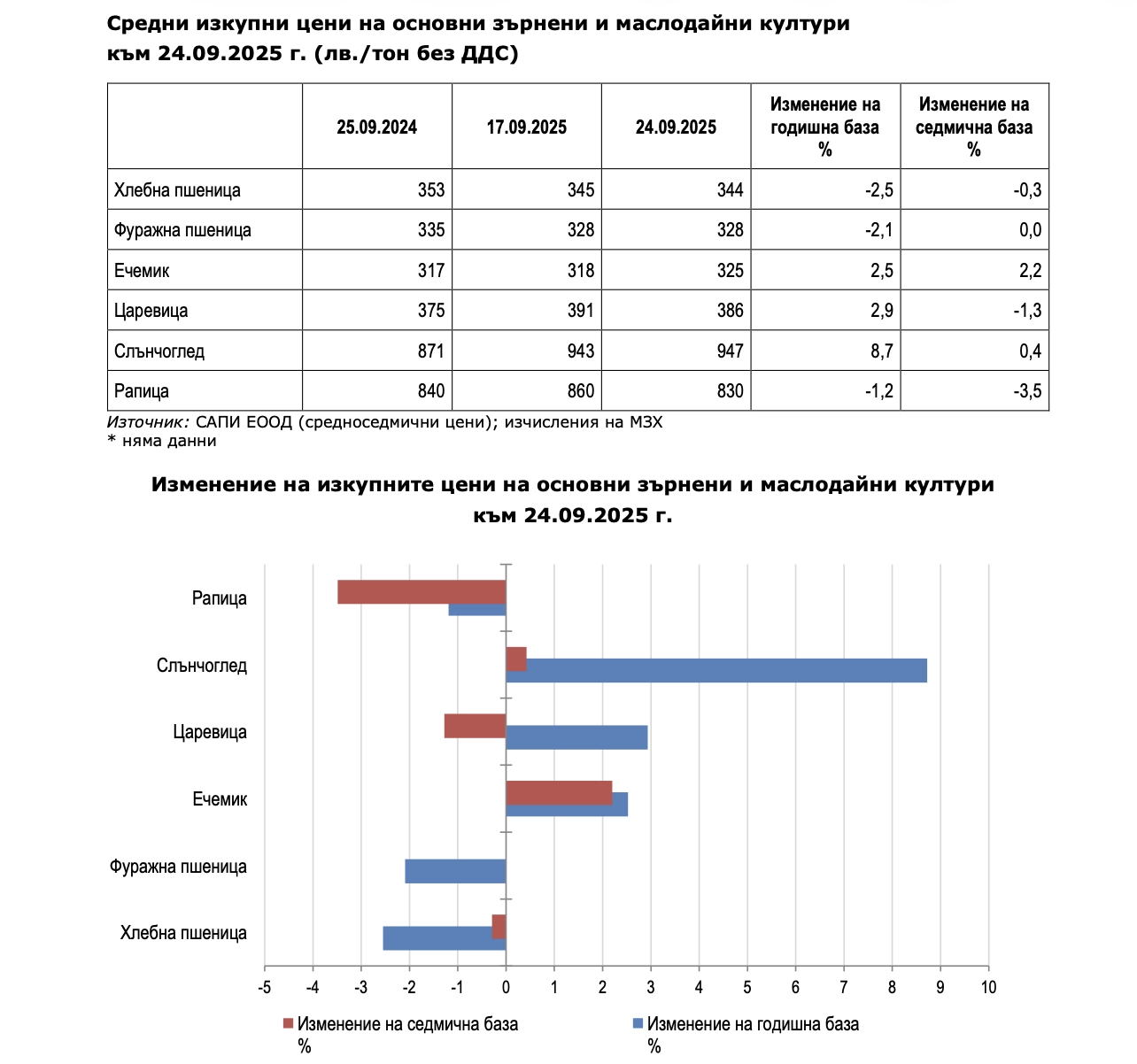 слънчогледът (с 0,4%), а цената на фуражната пшеница остава без промяна.